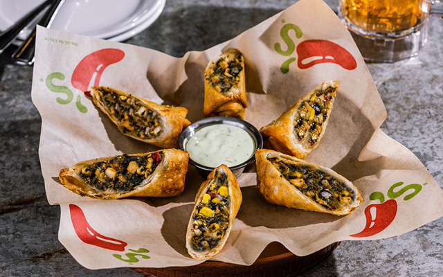24. Garnish the dipping sauce with the chopped tomato and onion.