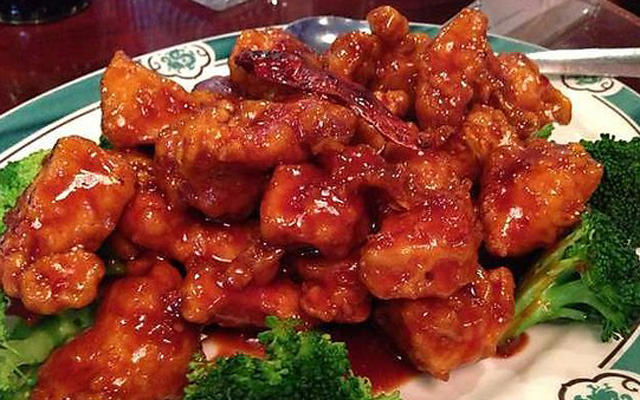 4. Repeat until all the chicken chunks are fried. Place 1 tablespoon oil in a wok and heat until very hot. Add the scallions and chiles and stir-fry for about 30 seconds . 5. Shake the sauce to recombine, then pour it into the wok. Cook until thick. If it gets too thick, add water until it s the right consistency.