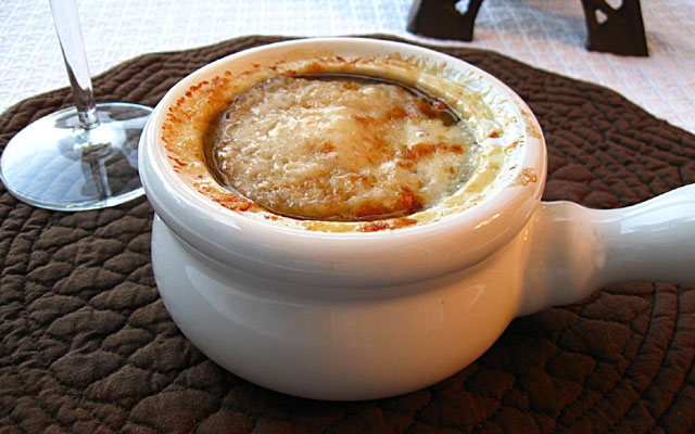 2. Mix all together simmer till onion is tender but not too soft, this can take about 30 minutes or so. Sprinkle with Parmesan cheese and garlic croutons